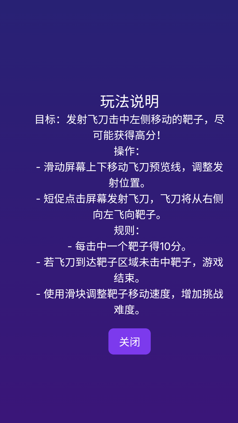 使用飞刀命中掉下来移动的追靶靶子获得1分 !神射手